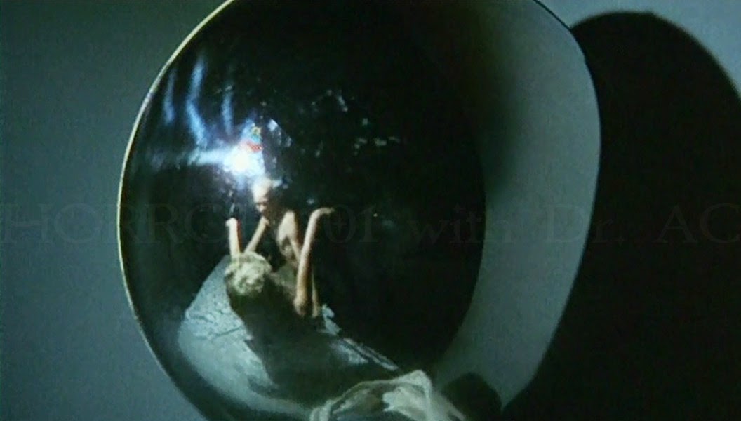 Speaking of which, the Master of Suspense’s shadow hangs heavy over the proceedings, with numerous call-outs layered in by Franklin – an admitted devotee – throughout. The clinic run by Dr. Roget (Michael Helpmann) is located in a structure strikingly similar to a certain house on the hill overlooking the Bates Motel, and our silent psychic killer kicks off the film by offing his mom and her lover in the tub (with a portable electric heater standing in for the butcher knife).